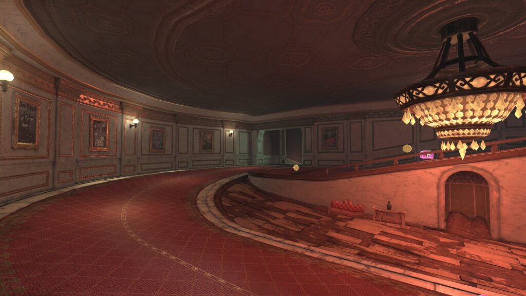 赤いカーペットが敷かれ、天井には大きなシャンデリア!