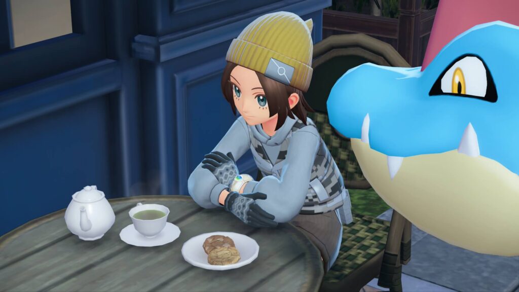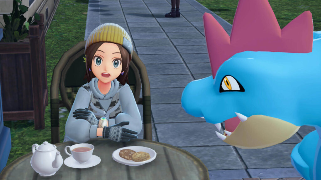今回カフェを一緒に楽しむのは、おおあごポケモンのオーダイルさん。
