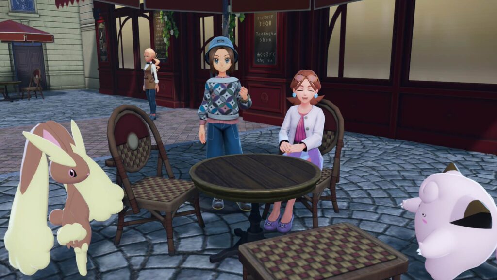 ミミロップ、ピッピと一緒にカフェを楽しむドルティさんを発見。