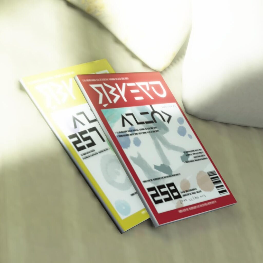 ミニテーブルの上にはクエーサー社の企業パンフレットが置かれていました。