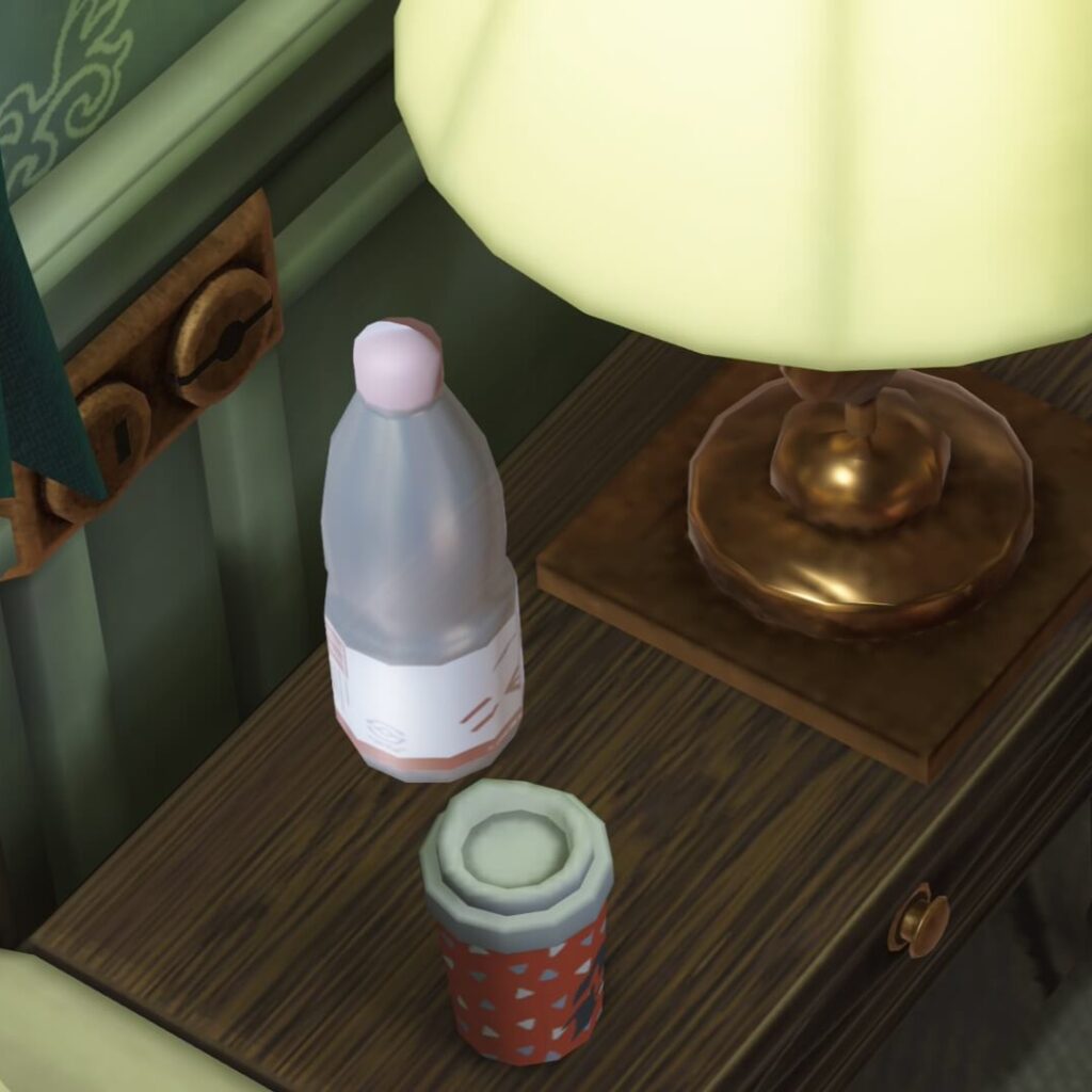 ベッドサイドテーブルを見ると、飲んだまま放置されたコーヒー容器を発見。