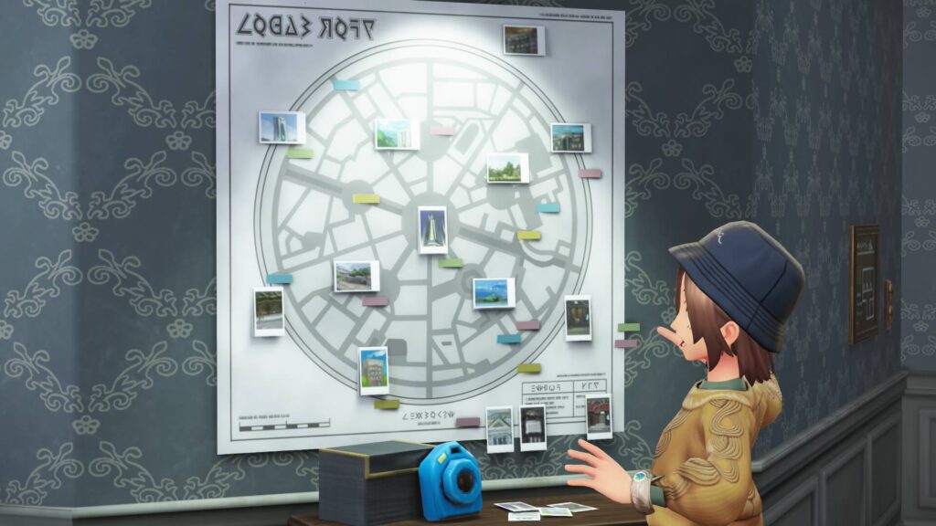 地図にはプリズムタワーやクエーサー社、ホテルZなど主要な建物の写真が貼られていました。