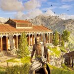 アサクリオデッセイに出てくるピタゴラス先生は、柱にしがみついてよじ登ることが出来ます。